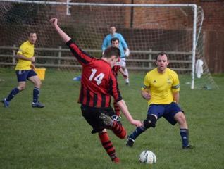 Chaps held onto their lead and regrouped at half time, feeling the hard work against the slope was done. Mosedale was introduced up front and managed to hold the ball up for us better, gving the defence a bit of time to breathe. Hizza however had other ideas, and there was an onslaught on the Chaps goal. With attack after attack, and with Hizza able to bring on 3 fresh substitutes, tiredness eventually took it's toll and the Chaps conceded in the 73rd minute. From here it looked as though the game would only go one way, though not one single Chaps player gave up trying.