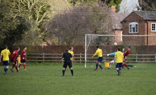 Despite the importance of the impending game, Chaps were again without a number of key players. Dowsett was once again missing, as was midfield maestro Feasey. The line-up was again shuffled to accommodate players that were available. The defence looked very strong—Slater, Farr, Tarplee and Tomolinson lined up at the back ahead of Hobbis in goal to present possibly the strongest back four this season. Penny was pushed out to the left wing with Jones on the right, captain Whalley playing centrally alongside the returning O'Brien, and upfront N. Hobbis returned to partner Watkins. Mosedale returning from injury was on the bench, alongside Tansley and stand-in manager for the day Leroux.